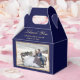 Elegant navy blue wedding photo favour box. Easily personalise these wedding favour boxes with your wedding details. Our custom wedding favour boxes are perfect for your classic navy blue wedding party. These personalised thank you favour boxes can be customised to other occasions, such as bridal showers.