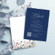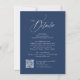 Simple modern script design on navy blue color, warm and romantic, great details cards with QR code for rustic fall wedding, mountain destination wedding, and boho floral wedding