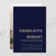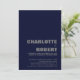 Invite your friends and loved ones with this stylish minimalist navy blue with grey text wedding reception invitation featuring a photo of the newlyweds on the back to share your joy in your recent marriage. For best results fitting your chosen image for the back of the invitation crop it to a 5 x 7 ratio.