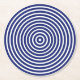 Modern navy blue white circular stripes pattern round paper coaster