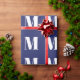 Customise it w/Initial, White Letter, navy blue background pattern gift Wrapping Paper.
