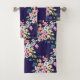 Modern Navy Blush Pink Floral Print Bath Towel Set