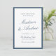 Announce your wedding with this navy photo save the date card, featuring a tailored border and a polished, formal layout. The couple’s names are showcased in elegant calligraphy script, while the wedding date, venue, and location are presented in classic serif type for a refined, balanced look. The back displays your engagement photo framed with a coordinating navy border, creating a cohesive two-sided design. Ideal for formal weddings, black tie ceremonies, classic venues, and traditional weddings, this personalized navy save the date coordinates beautifully with timeless wedding invitation suites and offers a sophisticated way to share your wedding date.