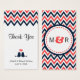 A modern & minimalist invitation suite with navy and coral chevron stripes and cute love birds.