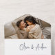A beautiful typography based wedding invitation featuring your names in modern navy blue handwritten script lettering at the top. Personalise with your wedding details in classic serif lettering aligned at the lower right, and add a photo at the top. Attached RSVP card and folding style makes this all-in-one invitation an appealing choice.