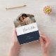 Modern Navy Handwritten Script Photo Wedding All In One Invitation