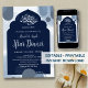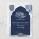 Host a stylish Iftar dinner with this modern minimalist invitation. Featuring a sophisticated navy blue color palette with abstract geometric shapes, subtle watercolor textures, and a bold dark arch frame. This clean and contemporary design is perfect for young professionals, modern families, or corporate Iftar events. Easily customize the center frame with your event details.