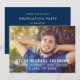 Modern graduation party invitation with a bold navy and white layout and a customisable photo front featuring the graduate’s name, school, and Class of 2026. Clean, masculine-leaning typography makes it feel polished and timeless. The back includes a coordinating navy design with matching party details for a cohesive set.