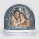 Celebrate the season with a snow globe that captures your favourite holiday moment. This design features delicate snowflakes and a custom Christmas greeting on a deep navy blue snowflakes background, with space on the back for a treasured family photo and name. A thoughtful keepsake for any family holiday display, this globe is customisable to reflect your unique style. Perfect for heartfelt gift or cosy home decor.