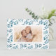Modern Navy Blue Watercolor Photo Holiday card with a simple, elegant branch and leave illustration. Easy to customise with your second photo instead of the pattern for the back.
