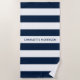 Modern navy blue and white stripes custom name monogram Beach Towel