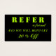 Minimalist Clean Black Soli Colour Background and Neon Lime modern font - Referral Cards. Personalise for your custom use.