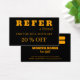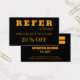 Minimalist Clean Black Soli Colour Background and Neon Orange modern font - Referral Cards. Personalise for your custom use.