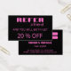 Modern Neon Pink Black Referral Cards