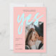 A modern Save the Date Card with a fresh neon color palette of mint green and pink, featuring big bold Calligraphy Script for Yes and your image of choice. All colors of this Photo Save the Date Template can be changed! A unique but affordable Save the Date Invitation for modern couples.