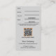 On the back, from top to bottom, the card has handwritable fields and their descriptions for new customer name, employee or referrer name, tracking ID, and expiration date. Below that are the terms and conditions, a customisable QR code, a call-to-action to scan for details, and finally the company name with contact information. The card is suitable for boutiques, spas, beauty salon, garage, Tyre store and more.
