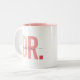 Cute, modern coffee mug saying DR. in modern typography in dusty blush pink tones with your family name in trendy script calligraphy on a two-toned coffee mug. Perfect appreciation gift for a special doctor in your life, a heartfelt thank you, or PhD graduation gift!