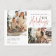 Modern and elegant Photo Moving Announcement Postcard with a drawing of three cute green Christmas tree, casual calligraphy script lettering and two family photos you can personalise.