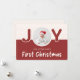 Celebrate your little one’s first Christmas with this joyful photo card featuring a playful red and cream design and festive typography. Perfect for sharing your baby’s holiday debut with loved ones, this sweet Christmas baby announcement brings warmth and cheer to every mailbox. Personalize with your child’s name and favorite photo to create a keepsake to treasure. Customize yours today.