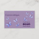 The Modern Nice To Meet You Purple Connect On Social Business Card is in landscape format and is part of the Flutter in Blue - Bathroom, Beach, Yoga and Travel Accessories collection. A flutter in blue with a purple background adorns the front. It carries the message of appreciation to have met and social networking icon for Instagram, Tik-Tok, Pinterest and Facebook with your social handle. On the back is space for your profile photo name and an invitation to scan the QR code to connect.