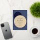 Modern geometric design utilising circles in soft blue, navy, and cream colours.