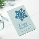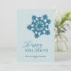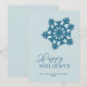 Simple minimal retro style blue snowflake and Happy Holiday typography script non-photo minimalist trendy Christmas holiday card. Easy to personalise with your family name and year.