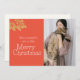 Fresh & modern. This lovely christmas holiday card features a set of contemporary fonts, a custom photo, custom text plus lovely festive imitation gold leaf graphics. This card is available in 2 background colours: creamy white and coral red. Write your own special message at the back to make it your own.