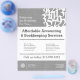 This professionally designed flyer template perfectly coordinates with the matching business cards and stationery for an elevated aesthetic for your accounting or financial services business. An abstract circle of numbers creates a unique logo and brand identity for your business. Customise the fields with your own promotion or offering. Logo design and layout by 1201AM Design Studio. © 1201AM