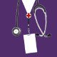 Creative nursing school graduation invites featuring purple hospital scrubs and healthcare supplies.
