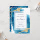Modern Ocean Inspired Blue Watercolor Gold Splash Invitation