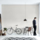 A modern minimal off white wallpaper with a linen look texture for a home office.