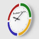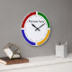Cool modern technology theme custom office wall clock you can customise with your own business name or message designed in primary colours on the main face markings in a simple minimalist contemporary style. Display this modern clock in your office customer waiting room or supply one to every employee.