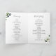 This modern olive branch folded wedding program is perfect for a boho wedding. The rustic yet elegant design features simple watercolor botanical green leaves and black olives on a small branch with a classic mediterranean feel.