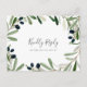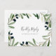 This modern olive branch menu choice RSVP postcard is perfect for a boho wedding. The rustic yet elegant design features simple watercolor botanical green leaves and black olives on a small branch with a classic mediterranean feel. This wedding response postcard conveniently asks guests what meal they would like at your reception.