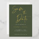 Modern Olive Green Gold Foil Calligraphy Script Wedding Save the Date Card with gold foil. Change foil colour to another colour if you like. Background colour can also be changed.