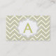 Modern olive green, grey, ivory chevron pattern monogram personalised business card. There is a frame with your monogram in the centre. A stylish zig zag design using the classic stripes with contemporary yet vintage look in a sense. You can change background -olive green- and monogram colour choosing from over 200 colours from Zazzle colour chart. Elegant, classy and sophisticated design that can be used as personal business cards or for many types of business such as Interiors, crafters, stylists.
