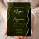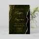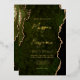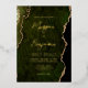 This elegant wedding invitation features a background image of olive green agate trimmed with faux gold glitter. The customisable text combines gold-coloured modern handwriting, copperplate and italic fonts. The reverse side features a coordinating olive green and gold agate design.