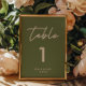 A simple and elegant olive green table number card. Customise with your names and wedding date on the bottom.