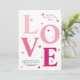 Make your Valentine's Day celebration extra special with our chic ombre pink invitation adorned with a playful 'LOVE' and heart motif. The 'LOVE' word beautifully fades from a soft to a bold pink shade, perfectly accented by charming hearts. The reverse side showcases a lovely pattern of horizontal pink stripes, adding a touch of romance to the overall aesthetic.