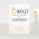 Elegant congratulations on your enegagement greeting card, featuring faux gold little heart confetti, and an OMG! with the 'O' as an engagement ring. Use the modern engagement template to personalize with names.
