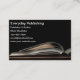 Book publishing and Author business card template with an open book graphic in the background and simple classic business card layout you can customise online. Presented on high quality UV coated business card stock.