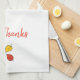 Elegant white kitchen towel with GIVE THANKS in dark red script lettering with autumn leaves. Beautiful addition to your home decor...with a message.