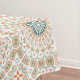 This modern mandala design features a lively blend of earthy orange, sage green, and deep teal, arranged in concentric layers of rhythmic shapes. The centre radiates outward with petal-like bursts that transition into playful loops, dots, and geometric forms, giving the composition both structure and flow. The alternating warm and cool tones create a sense of balance, while the repeating circular motifs bring movement and energy. Set against a crisp white background, the colours feel bright yet grounded, making the overall pattern both vibrant and soothing. A perfect choice for anyone drawn to geometric detail, organic symmetry, and bold, colourful expression.