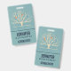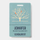 Name tag wwith a muted green background layered over top is a light yellow tree with 2 orange bird silhouettes sitting on the branches.