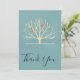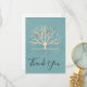 A flat thank you card with a message on the back you can personalise. Designed with a muted green background layered over top is a light yellow tree with 2 orange bird silhouettes sitting on the branches.
