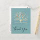 Thank You postcard with a muted green background layered over top is a light yellow tree with 2 orange bird silhouettes sitting on the branches.