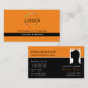 YOUR FAVORITE -Make a lasting impression with this elegant and simple orange, black and white coloured business card design with logo and (employees-) photo.