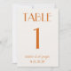 Modern Orange Cream Whimsical Wedding Table Number