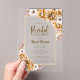 Invite your friends and family to attend your bridal shower with this modern orange floral acrylic bridal shower invitation. You can effortlessly add all the necessary details to the customisable text.