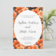 What sets this invitation apart is the intricate border that surrounds the oval. The border is filled with a stunning array of orange flowers in different shades, reminiscent of tropical locations. The combination of warm hues creates a vibrant and lively ambiance, setting the tone for a joyous celebration.